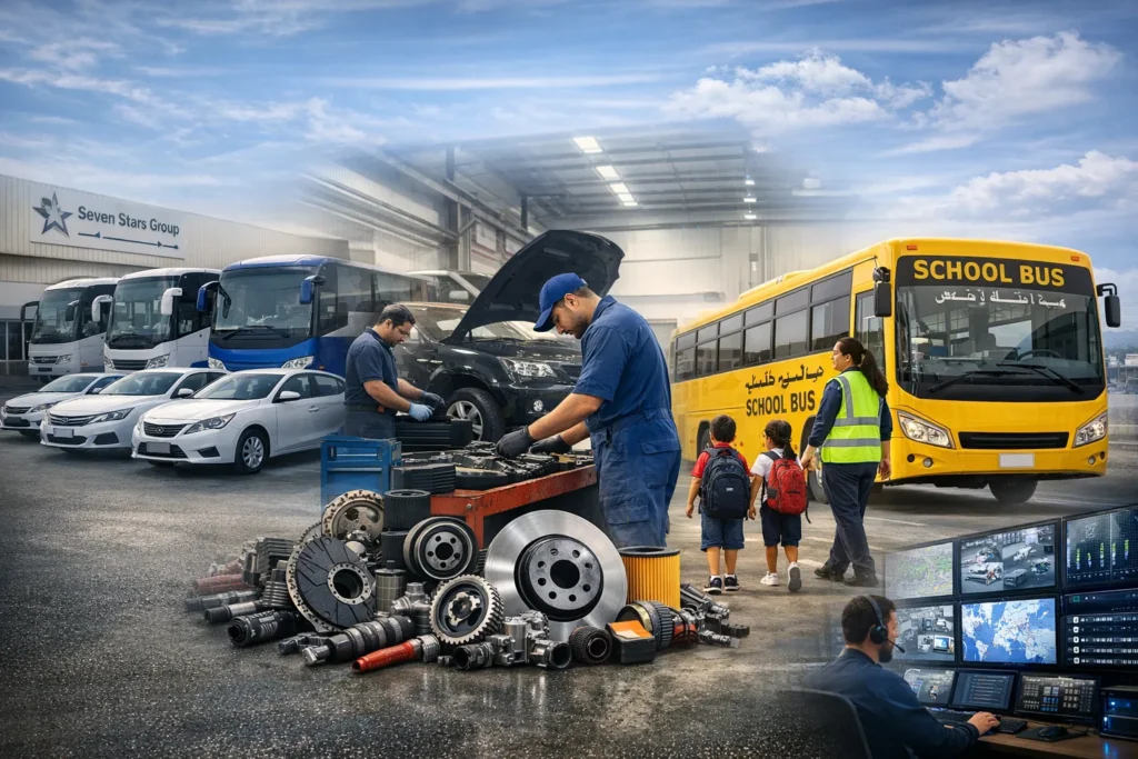 Established in 1991, Seven Stars Group has grown into one of the UAE’s most trusted names in transport, vehicle rental, and integrated automotive services. Based in Abu Dhabi with branches in Dubai and Mussafah, the Group serves corporates, educational institutions, and international defence forces.